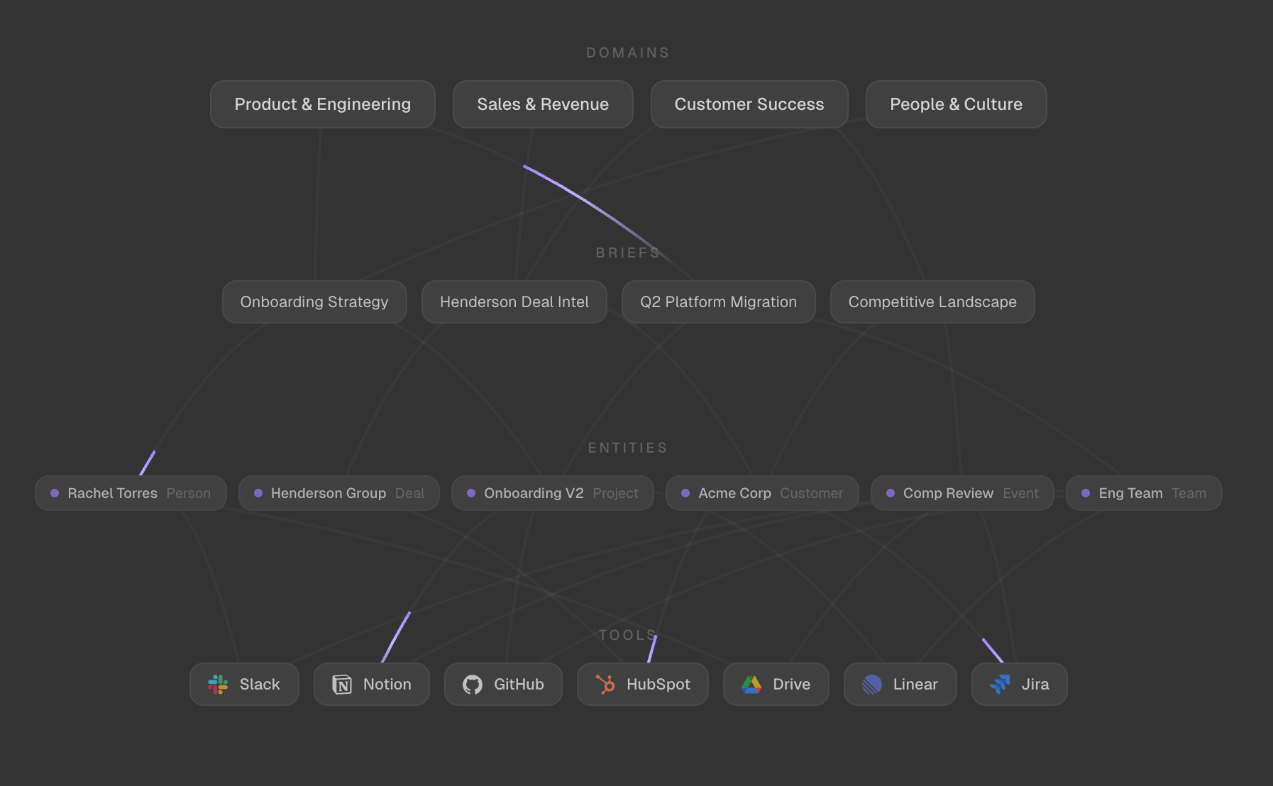Pensieve connects to the tools your team already uses (Slack, Notion, Linear, CRM) and builds a living knowledge graph of people, projects, customers, and decisions. When you ask an AI agent a question, Pensieve supplies the organizational context so you skip the copy-paste briefing that normally starts every conversation. Agents reason over structured relationships, not just document chunks. Free to use with your own API key for Anthropic, OpenAI, or Google.
