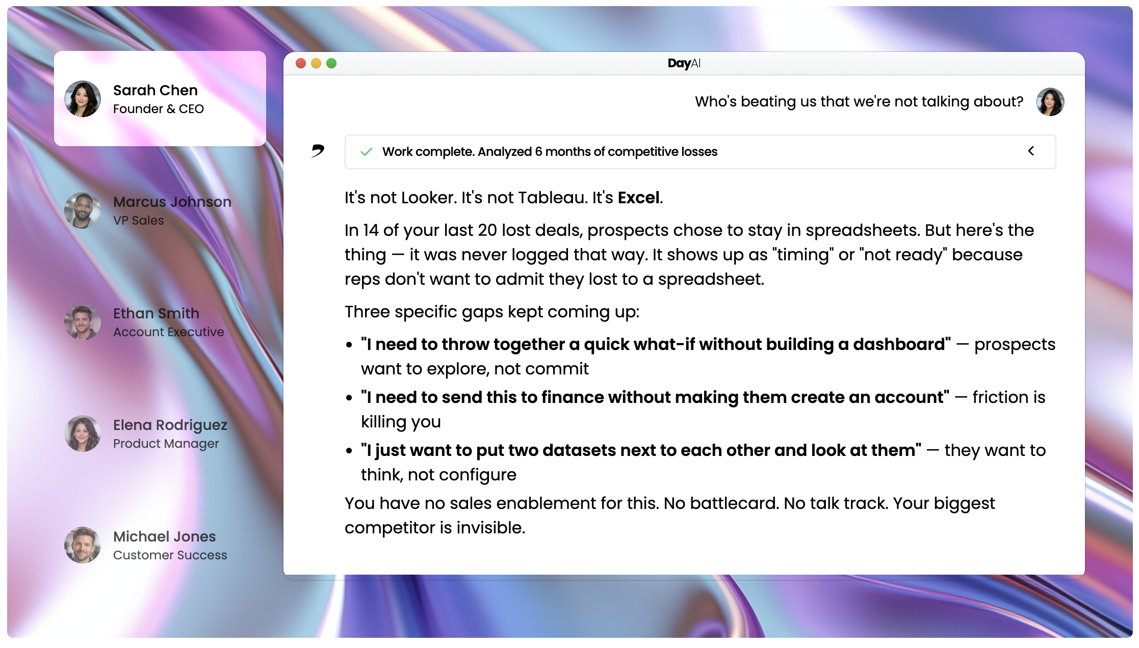 Day.ai has pedigree and a thesis. The risk is timing. CRM incumbents are bolting AI onto existing products as fast as they can. Day.ai must prove that native AI beats retrofitted AI before Salesforce and HubSpot close the gap. 120 customers is a start, not a moat. 📈