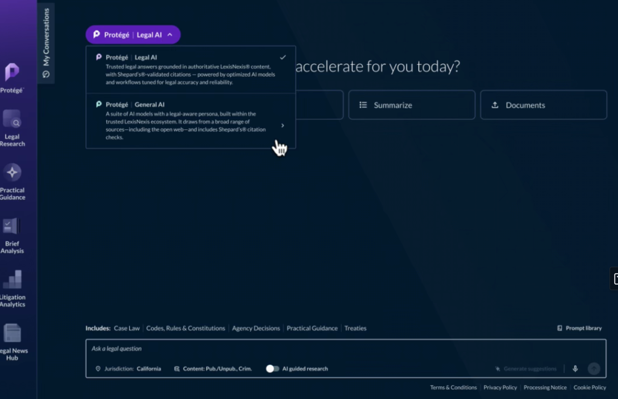 Protégé sits inside Lexis+ AI, which launched in 2023. Core strength: accuracy through auditing. Every output links back to source docs. A citator agent layers onto Shepard's Citations to flag fake cases. The system routes tasks to different foundation models, one for research, another for drafting. You can toggle between legal-grounded AI and general-purpose models without leaving the security perimeter. Think agentic orchestration meets courtroom-grade verification.