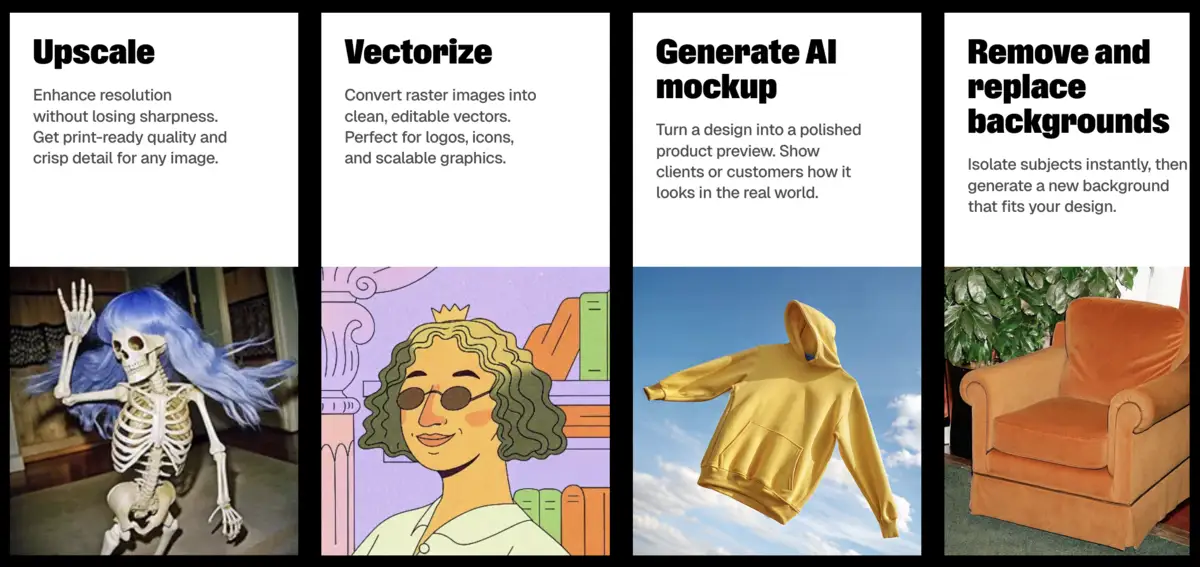 Recraft is a state-of-the-art AI image generation platform that creates both raster images and scalable vector graphics from text prompts. Choose from 20+ professional styles, create custom brand styles, and edit your creations with built-in tools like background removal, inpainting, and upscaling.