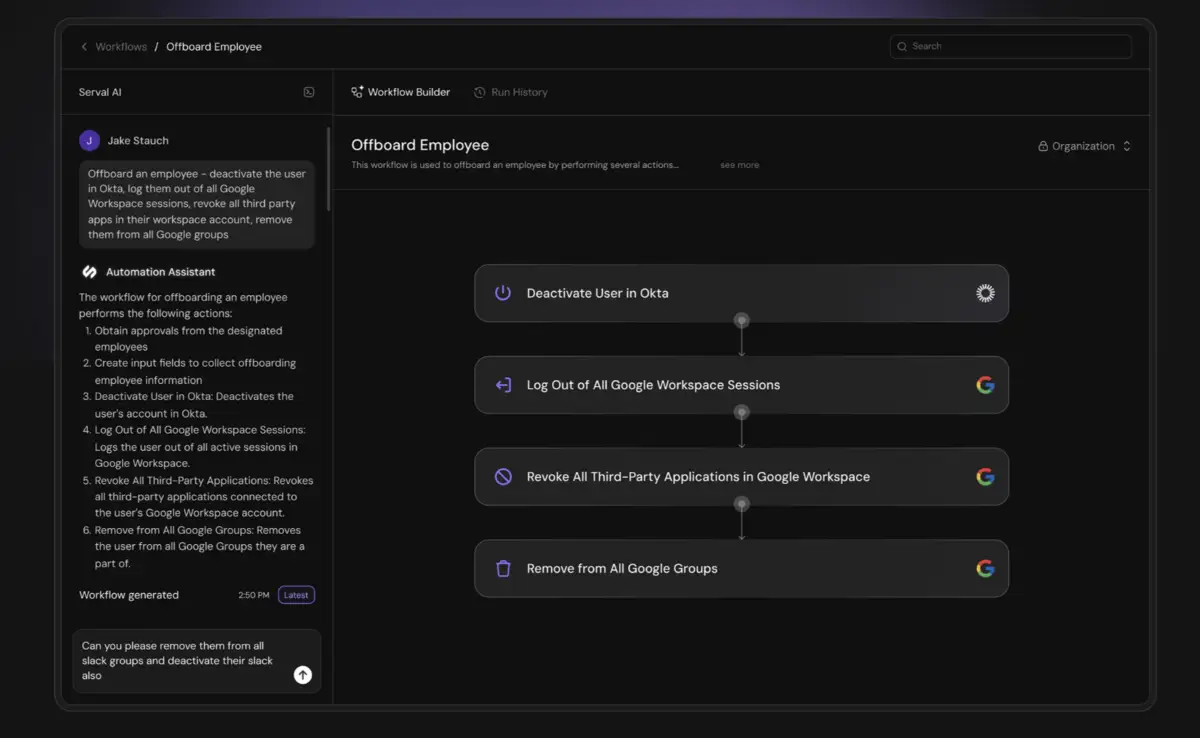 Serval is a unified help desk and access management platform with built-in AI agents. It automates help desk requests, access provisioning, and workflow creation using natural language—no coding required.
