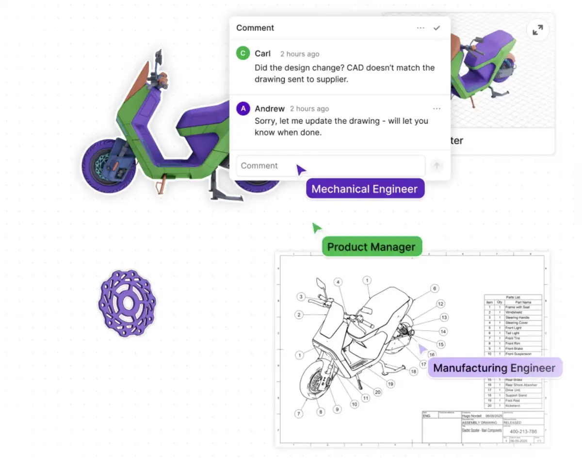 The Product It's a browser workspace where engineers, procurement, and manufacturing look at the same 3D models while AI flags production risks in real time. No app downloads. No version confusion. The platform runs fast process simulations—think 3-axis and 5-axis CNC—in seconds, not hours. Teams get change alerts, @mentions, detailed permissions, and natural-language search. The pitch: catch costly mistakes during design reviews, not after tooling orders ship.