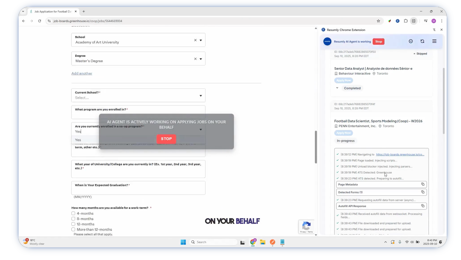 Use the Chrome extension to auto-apply to hundreds of jobs with one click