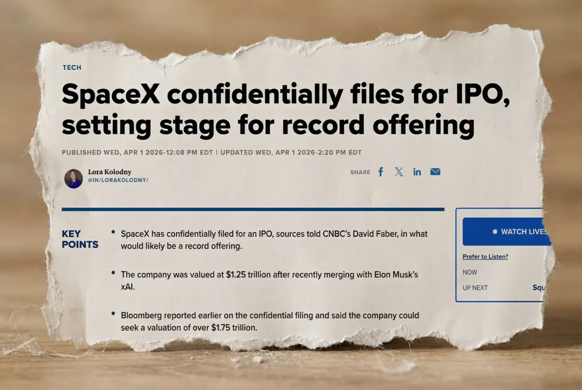 SpaceX submitted a confidential IPO registration to the SEC on Tuesday, targeting a June listing at a $1.75 trillion valuation. Twenty-one banks are managing the offering, internally codenamed "Project Apex." The filing puts SpaceX ahead of OpenAI and Anthropic, which are both exploring their own public listings.