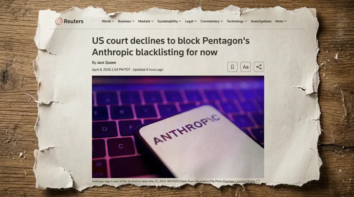 A D.C. federal appeals court declined to block the Pentagon's "supply chain risk" designation of Anthropic, saying the company failed to meet the "stringent requirements" for emergency relief. The ruling contradicts a California judge who blocked a separate Pentagon order on March 26, finding the Defense Department likely acted in bad faith. Anthropic is now simultaneously vindicated in one court and blacklisted in another. (Reuters, April 8, 2026)