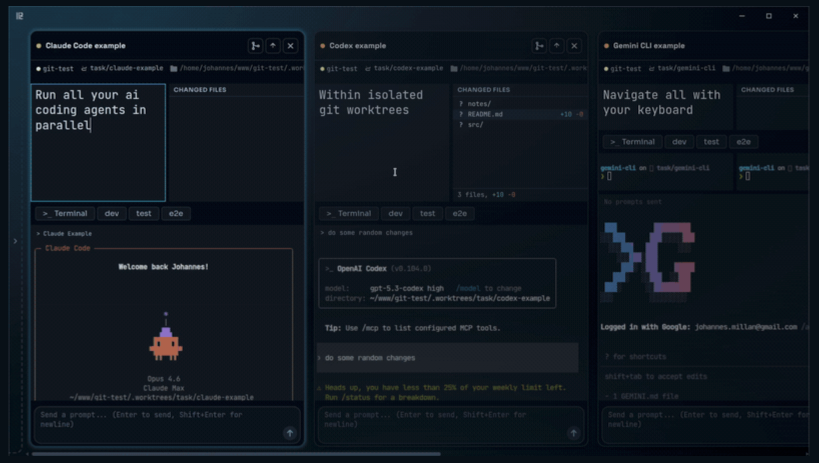Parallel Code is a free, open-source desktop app that runs Claude Code, Codex CLI, or Gemini CLI side by side on the same repository. Each agent gets its own isolated git branch and worktree, so ten tasks can run simultaneously without merge conflicts. A built-in diff viewer lets you review changes per task and merge the results back to main with one click. Available for macOS and Linux.