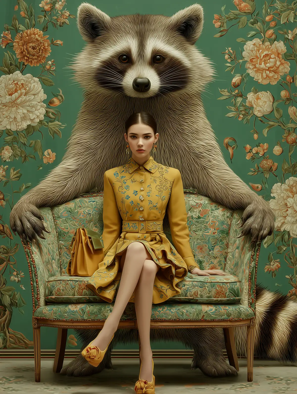 Prompt: a woman sitting with a huge raccoon --chaos 10 --ar 3:4 --sref