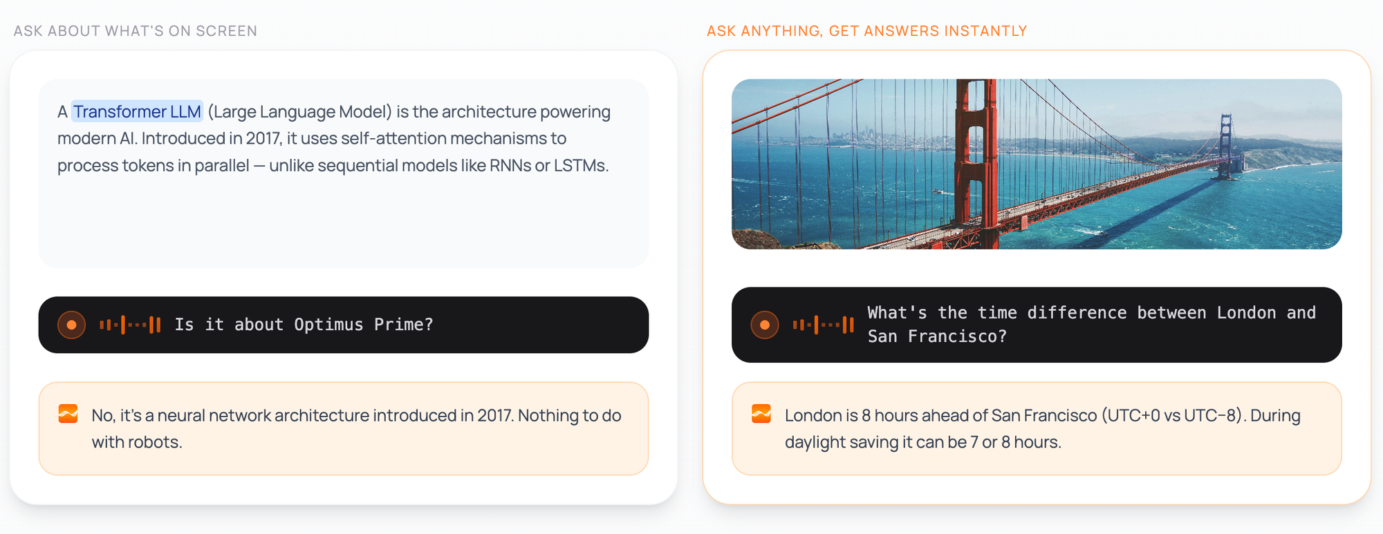 - Hit the assistant hotkey from anywhere and ask a question by voice: "Translate this paragraph to German" or "What is the capital of Peru?"