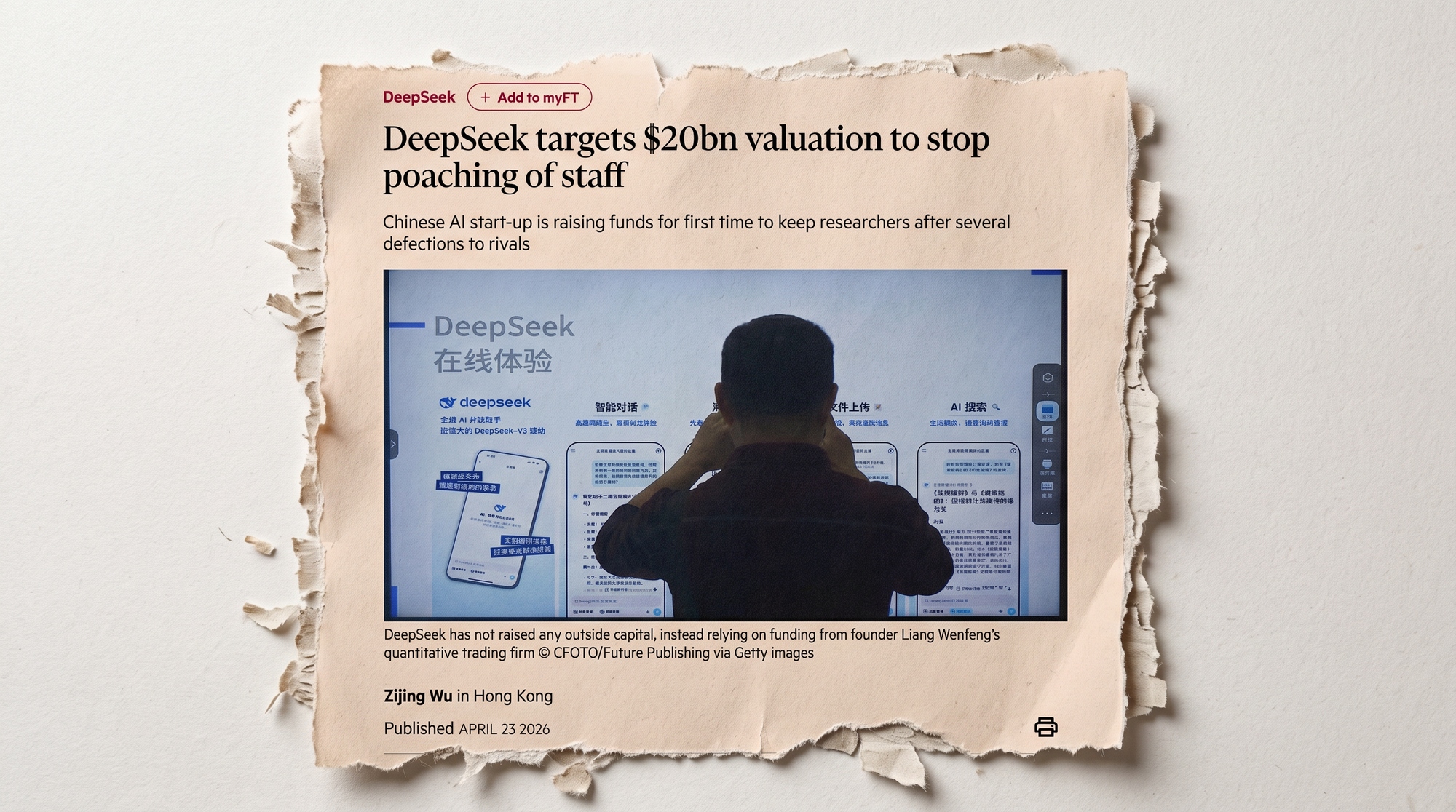 DeepSeek, the Hangzhou AI lab whose founder Liang Wenfeng spent 2025 publicly refusing outside capital and calling commercialization a distraction, is now courting a small group of strategic investors at a $20 billion valuation, the Financial Times reported Wednesday.