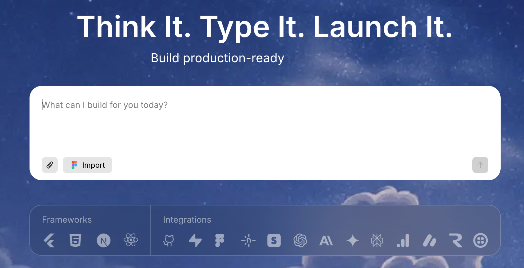 - Connect integrations like Supabase for backend, Stripe for payments, or push to GitHub