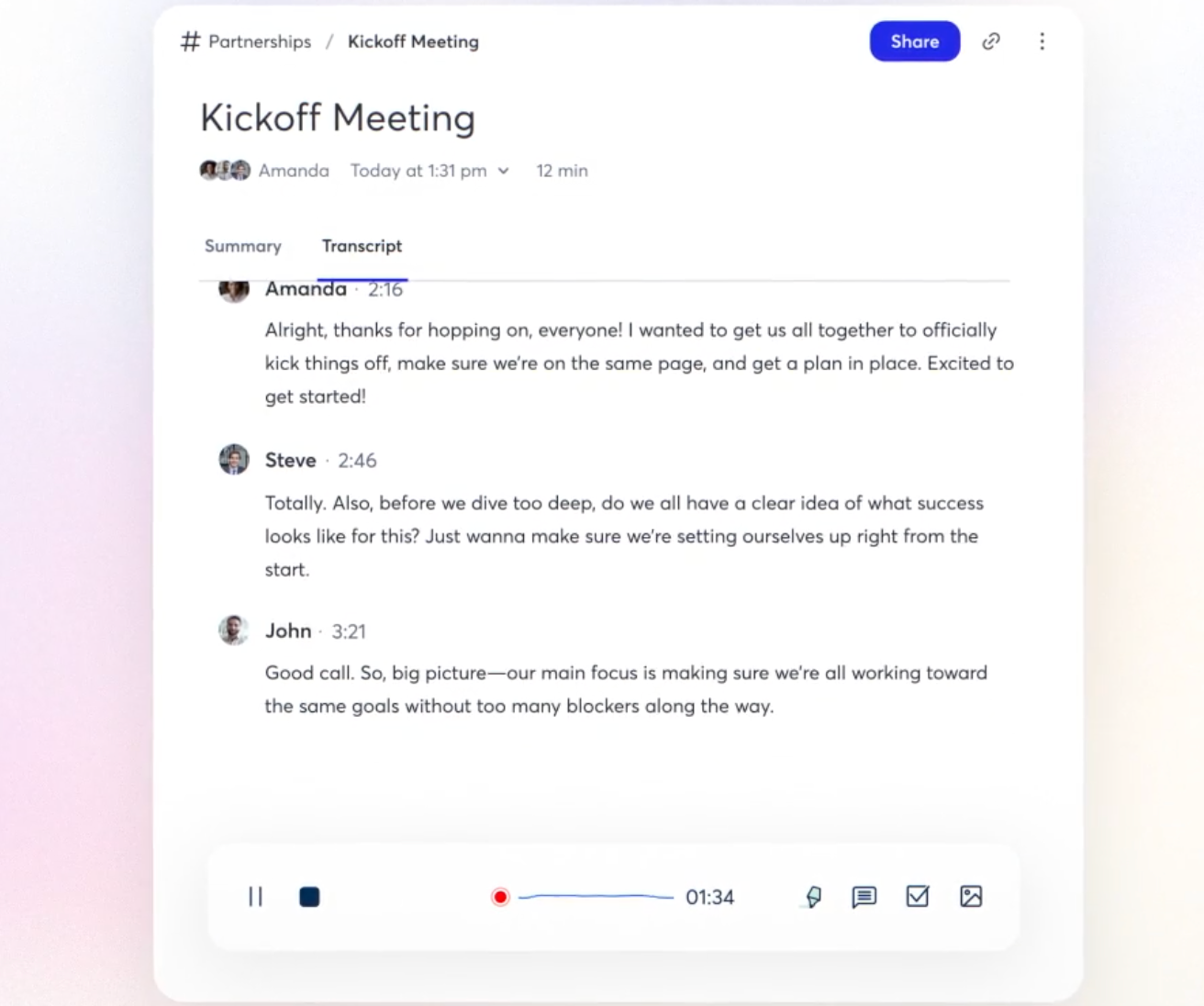 - Share the transcript with attendees who missed the call or need a reference