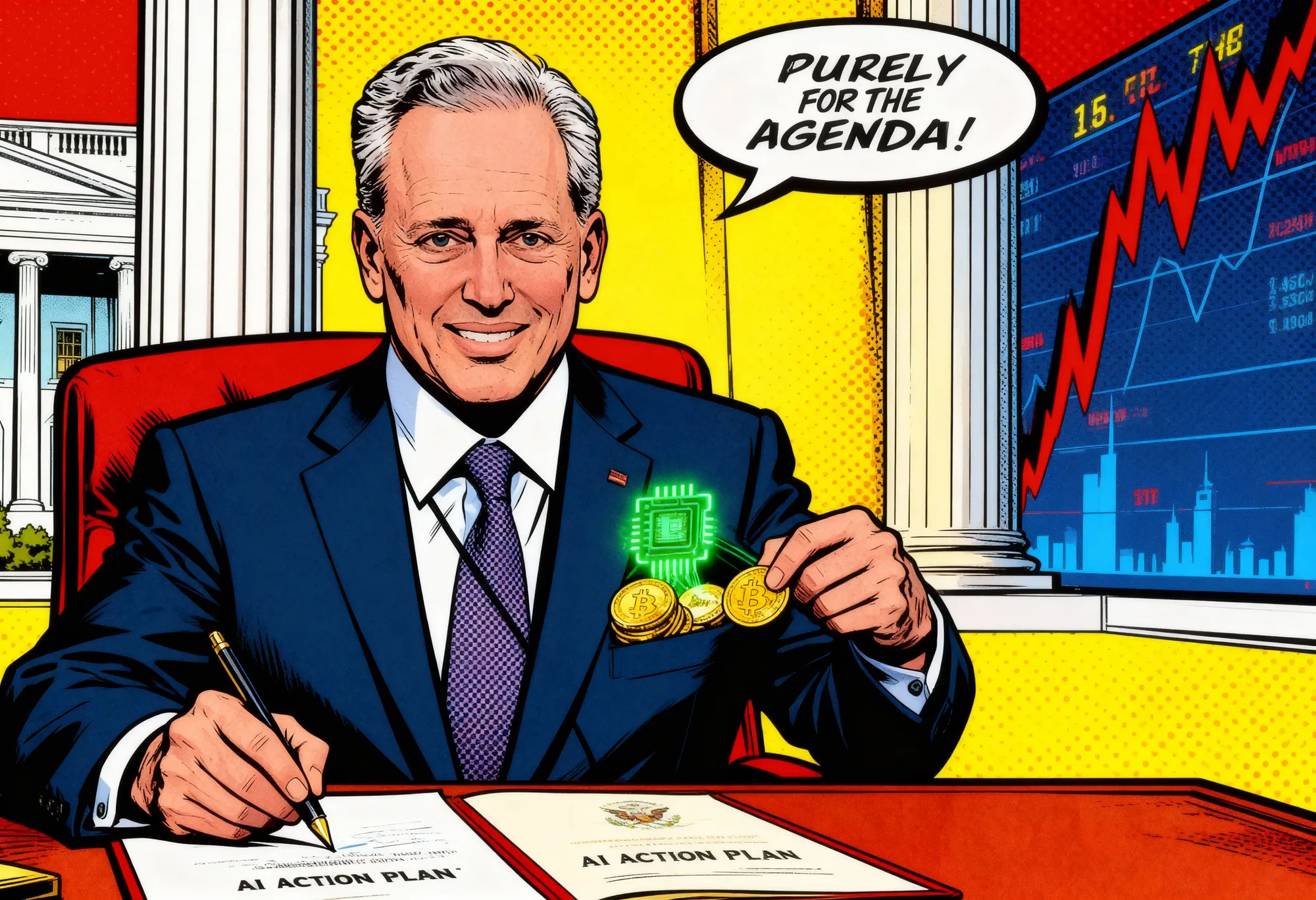 His spokeswoman insists this cost him money. Perhaps it did, relative to an alternate universe in which he kept every stake and faced no scrutiny. But the architecture permitted him to retain 449 AI-related investments while helping shape AI policy. It permitted him to promote stablecoin legislation while his firm held a stake worth well over $130 million in a stablecoin infrastructure company positioned to benefit. It permitted him to build a media brand on the back of White House access.