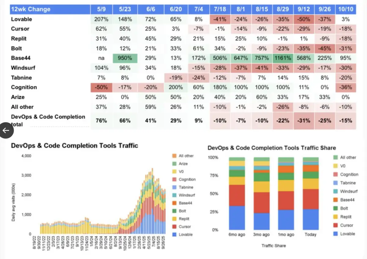 • Chamath's data shows vibe coding usage spiked then crashed while Google and Cursor launched October features promoting mass adoption.