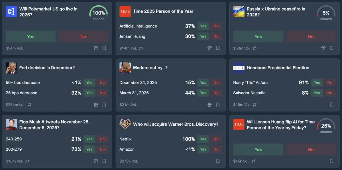 Polymarket runs prediction markets on everything from Fed rate cuts to papal elections. The crypto-native platform turns collective wisdom into tradeable probabilities, one USDC bet at a time.