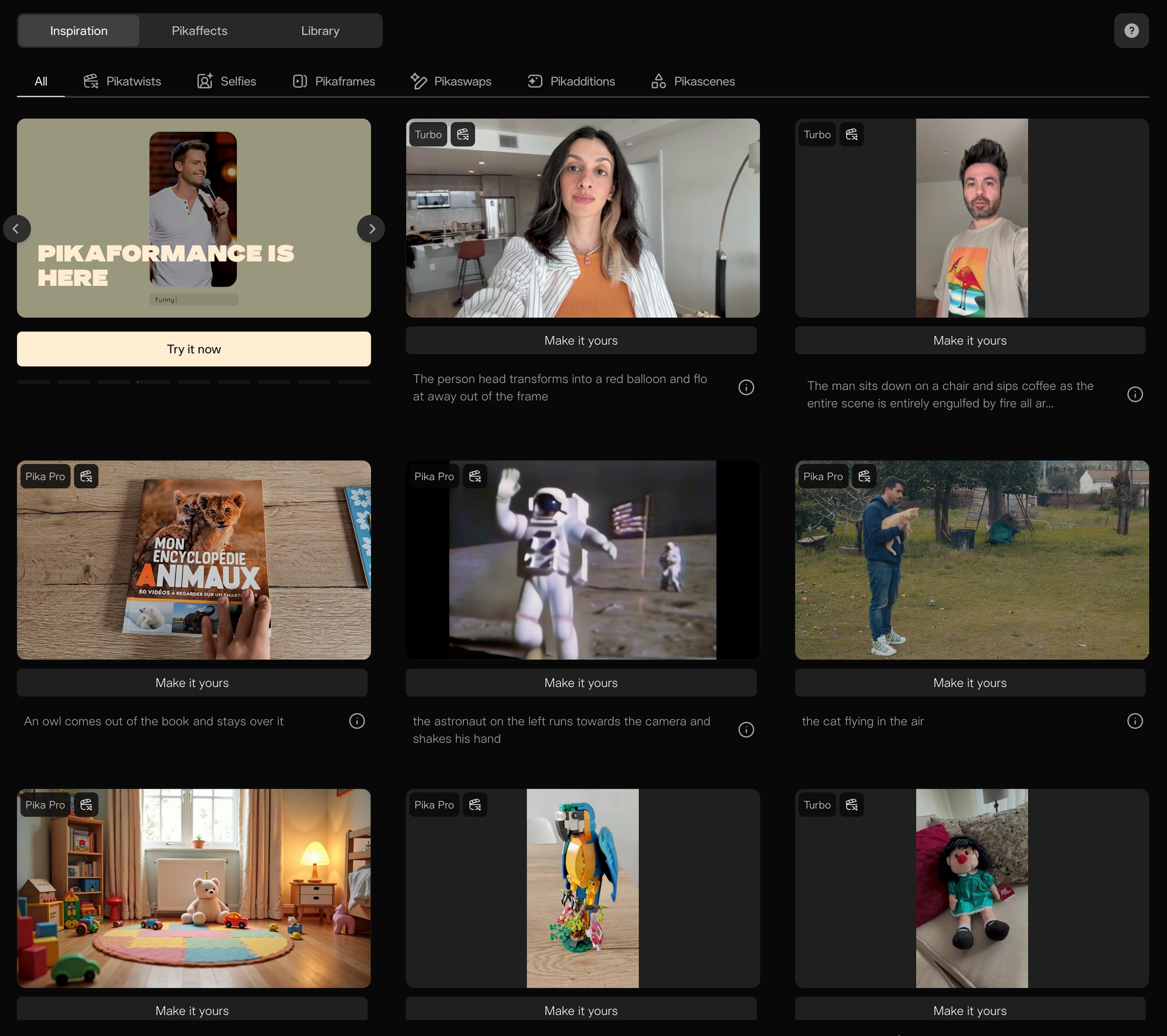 A web-based platform that generates video clips from text prompts, images, or existing video. Users can animate still photos, extend clips, swap objects, and change styles. Pika 2.0 introduced scene generation that maintains coherent characters and environments across shots. The interface targets creators and marketers who need video content without production crews.